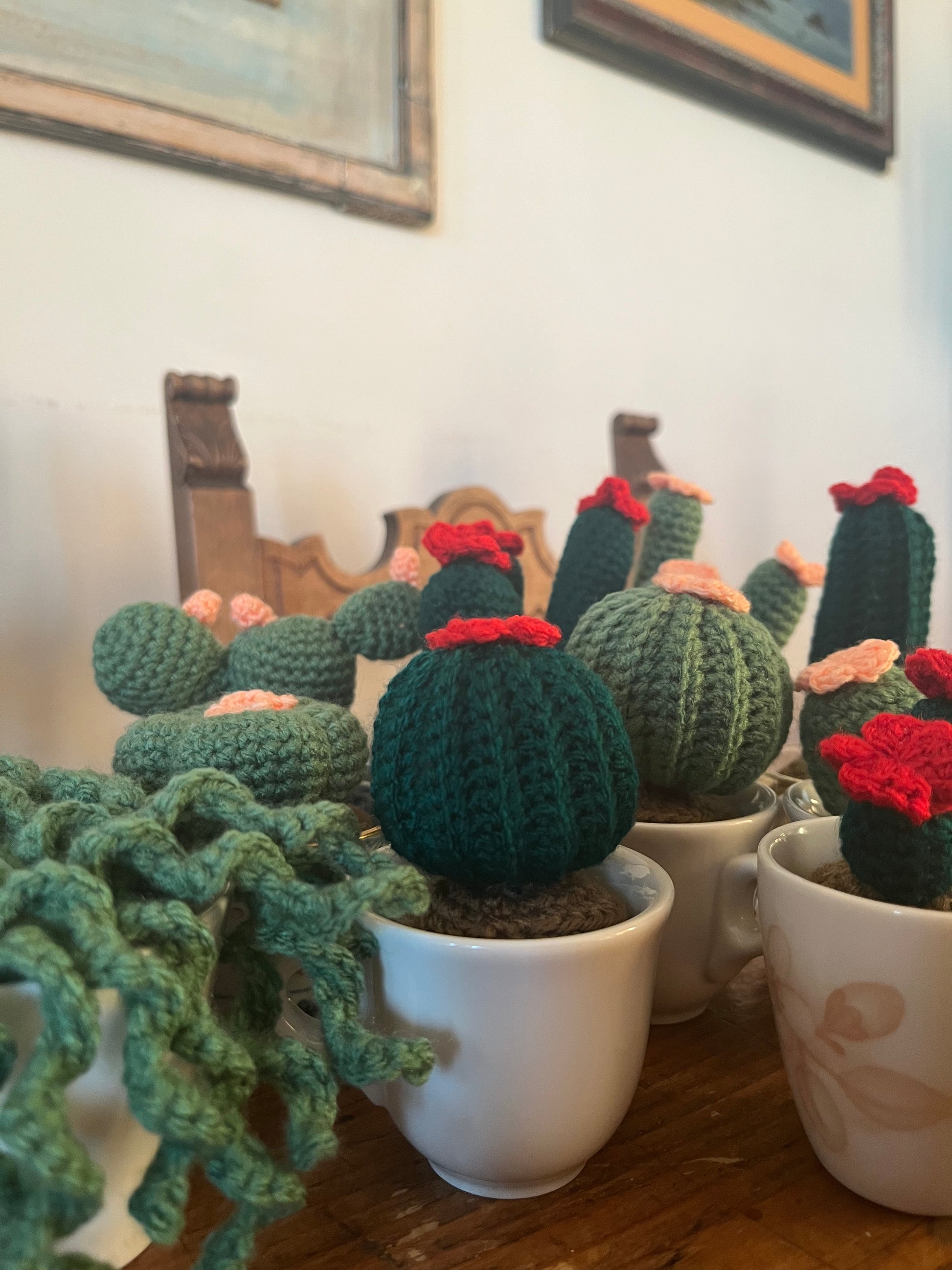 The Alba Plant is a sweet succulent with a flower, made of 100% acrylic yarn and filled with soft cotton wool. The plant measures 4 x 9 cm, excluding the crocheted soil, which measures 6 x 4 cm on average, but dimensions may vary depending on the cup you choose or the size of your favorite cup. It's perfect for letting your imagination run wild and creating colorful sets with other succulents on our site. The cups are all unique and different: you can choose based on availability or, if you prefer, purchase the plant alone to use with your favorite cup. Perfect as a gift or to add a special, cheerful touch to any corner of the home!